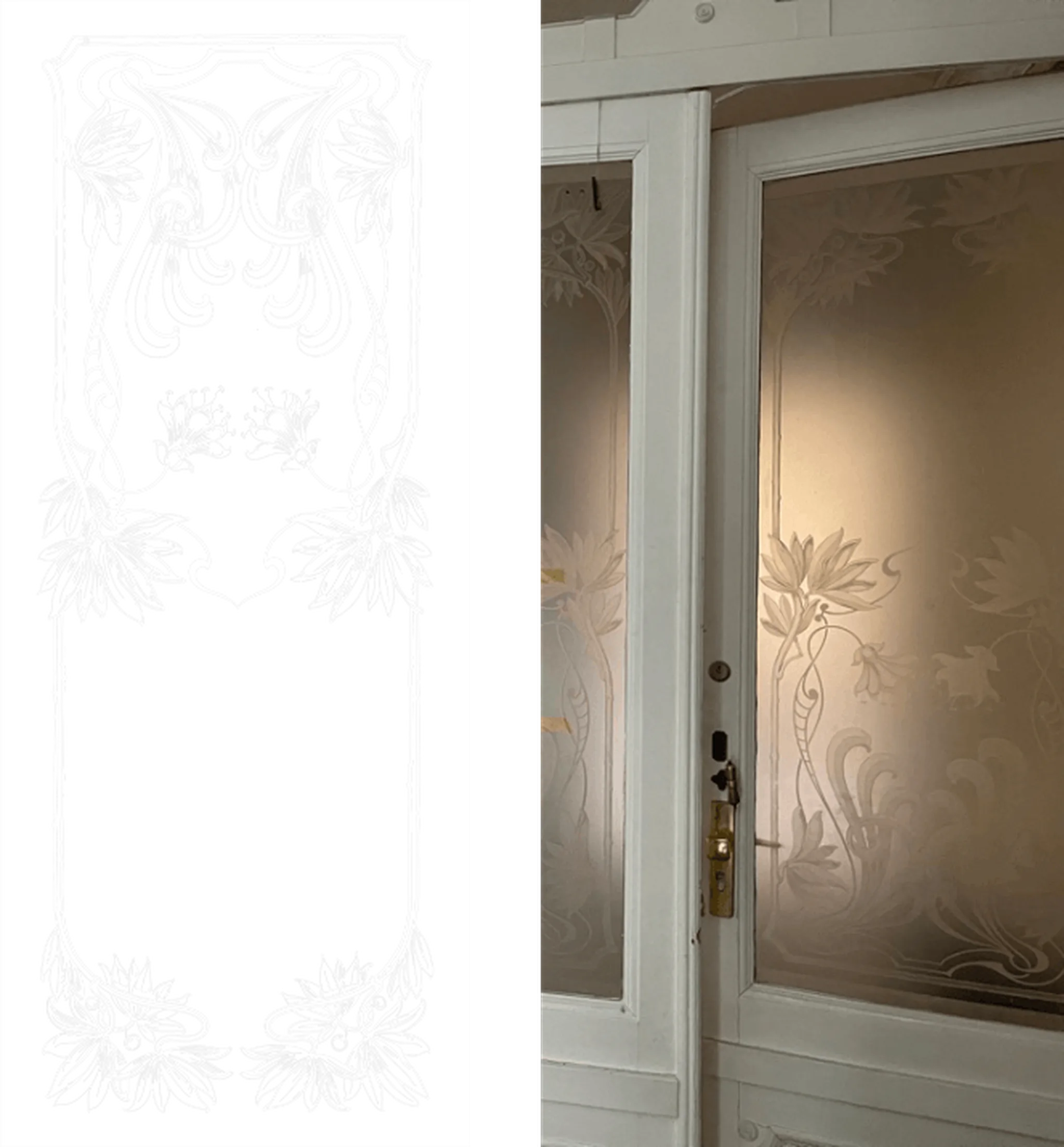 Des weiteren sind wir Spezialisten für Rekonstruktionen von wertvollen Bestandsgläsern oder Bruchglas mit Sandstrahlung oder Ätzung, die in Handarbeit, also vor der Digitalisierung entstanden sind. Hier im Beispiel sehen Sie ein Kunstwerk welches Mitte des 18. Jahrunderts entstanden ist. In mehreren systemstrukturierten Arbeitsprozessen ist es uns möglich, eine passgenaue Vektordatei zu generieren mit dieser wir die Folie zum Sandstrahlen produzieren um diese Werte zu erhalten.