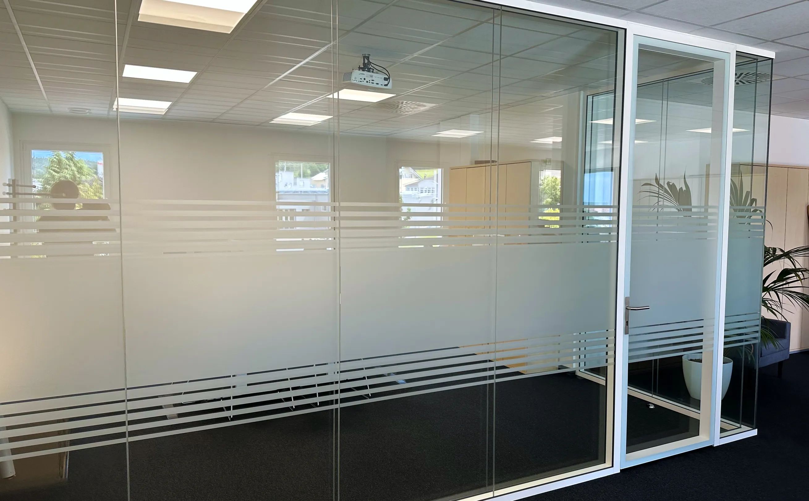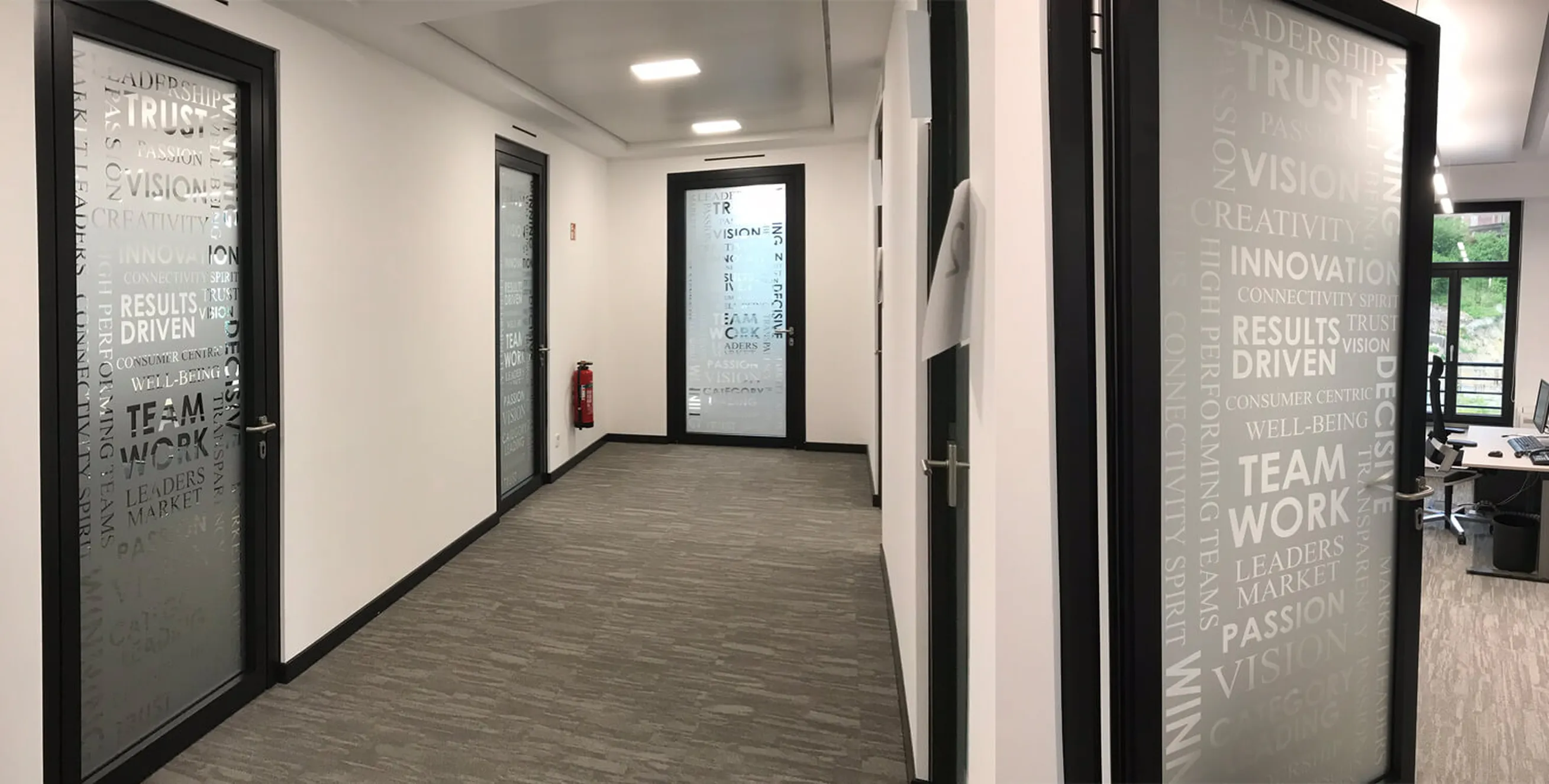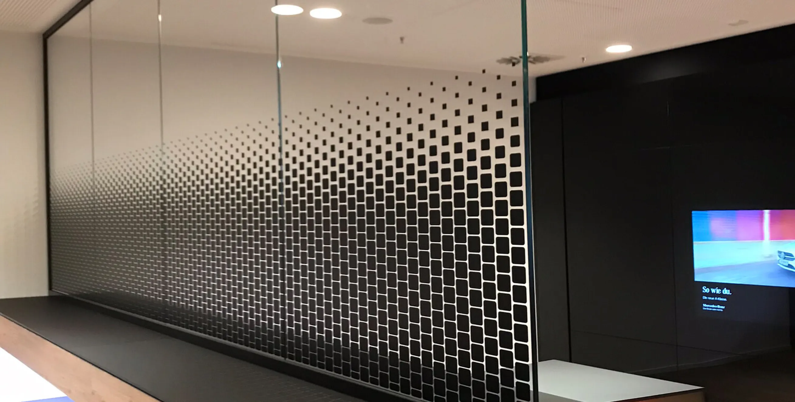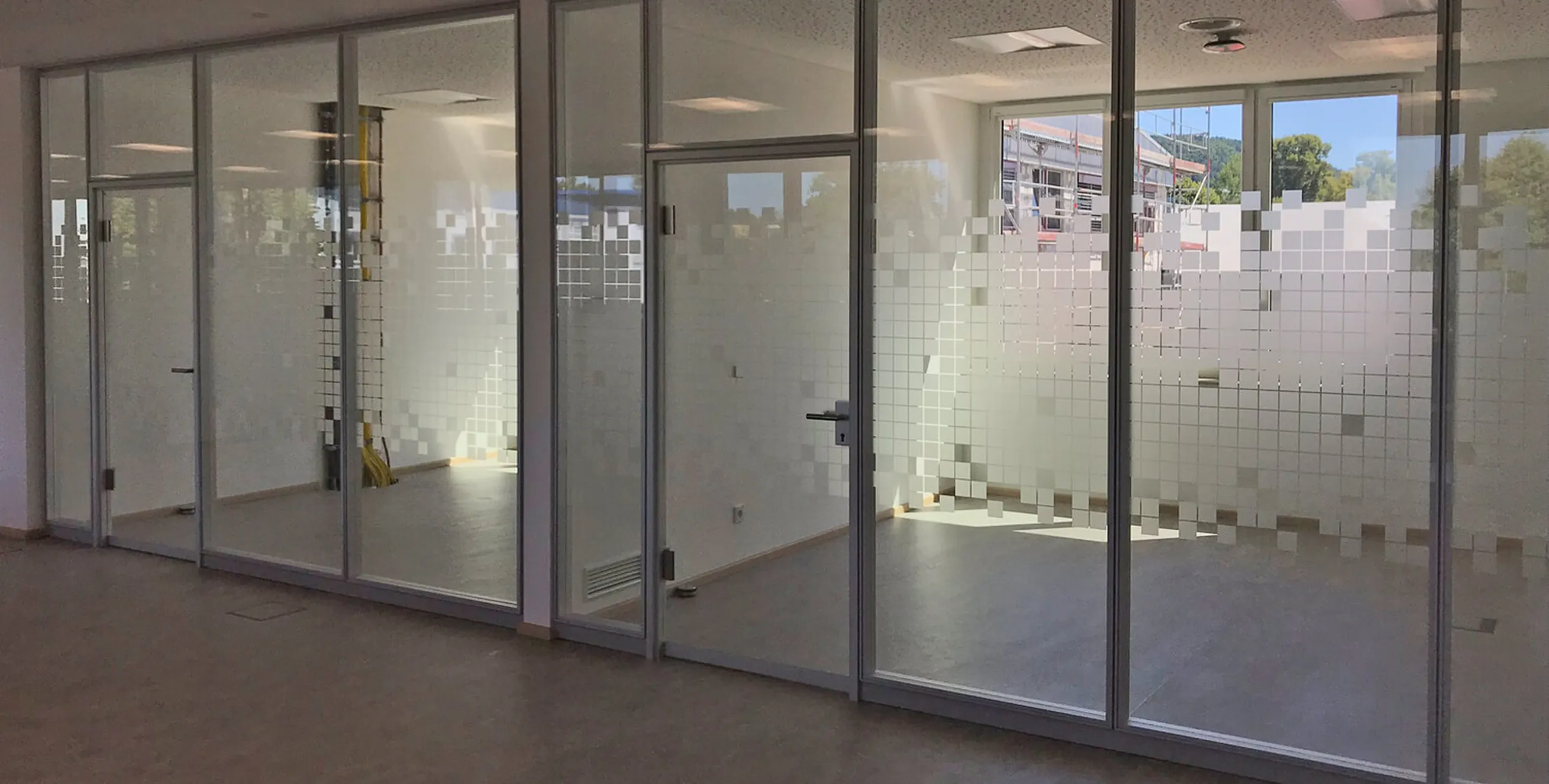 Wir sind seit 2004 ein fünfköpfiges eingespieltes Team und in der Lage Klein- sowie Großprojekte für die Verklebung von Glasdekorfolien umzusetzen. Durch unsere langjährige Erfahrung am Werkstoff Glas arbeiten wir sauber, genau und effizient, was sich auch in unseren Preisen widerspiegelt.